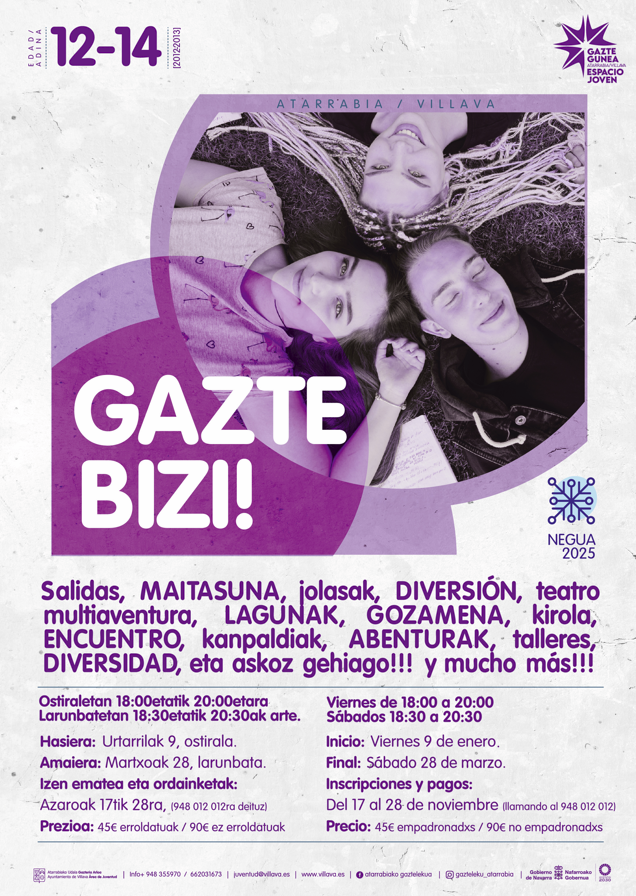 14 de noviembre de 2025Actividades Gazte Bizi Actividades programadas para Gazte Bizi y Gazte Bizi Plus Negua.