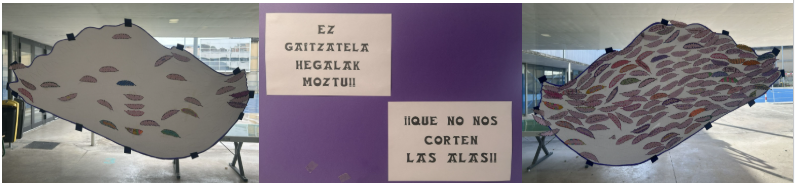 Ikasleek esaldi bat idatzi dute luma itxurako orri batean, emakumearen aurkako indarkeria desagerraraztea aldarrikatzeko. Luma guztiak prest izatean, azaroaren 25eko astean, ikasleek luma bakoitza horma-irudi batean itsatsi dute, bi hegal marraztuta, eta horiek bete egin dira emakumeen aurkako indarkeriarekin amaitzeko gizarte gisa bete beharreko helburuekin.